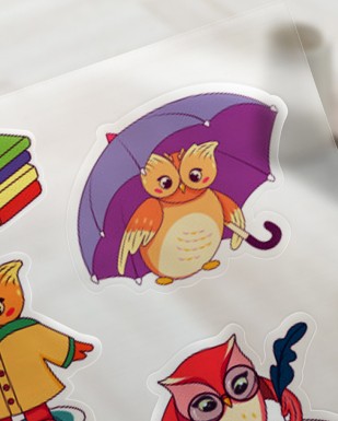 Наклейки печатаются на рулонной самоклеящейся пленке (белой или прозрачной)