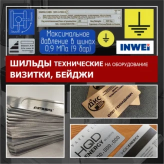 • технические наклейки и шильды на оборудование, устройства (используются для маркировки различных механизмов и оборудования)