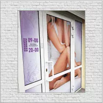 Наклейки с полноцветной печатью на самоклеящихся ПВХ-пленках. Печатаются на рулонной пленке (белой, прозрачной, полупрозрачной) методом широкоформатной или интерьерной печати. Для предотвращения выцветания и большей долговечности изображения ламинируются, затем разрезаются вручную на прямоугольные формы нужного размера и наклеиваются на витрину с лицевой или внутренней стороны. Глянцевая пленка добавит изображению яркости, матовая пленка позволяет избежать характерных бликов.